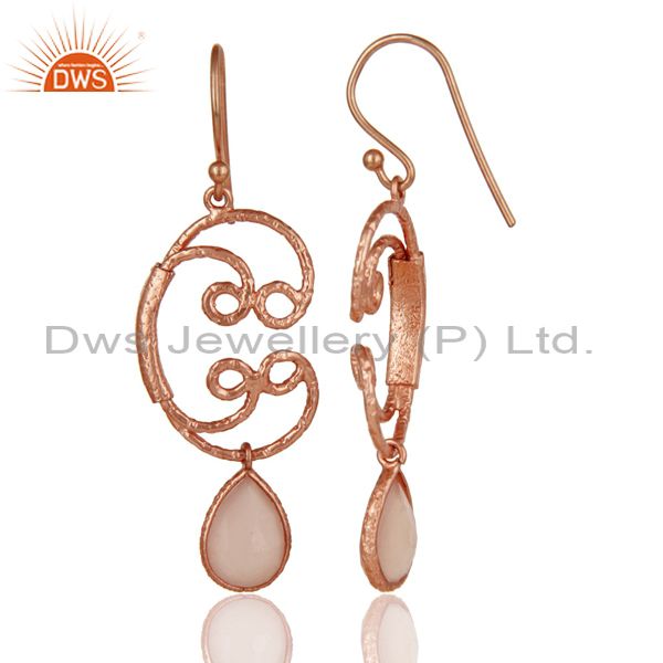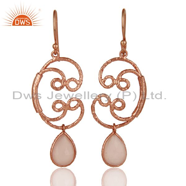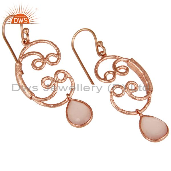 18k Rose Gold Plated 925 Sterling Silver Bezel Set Dyed Chalcedony Drop Earrings
