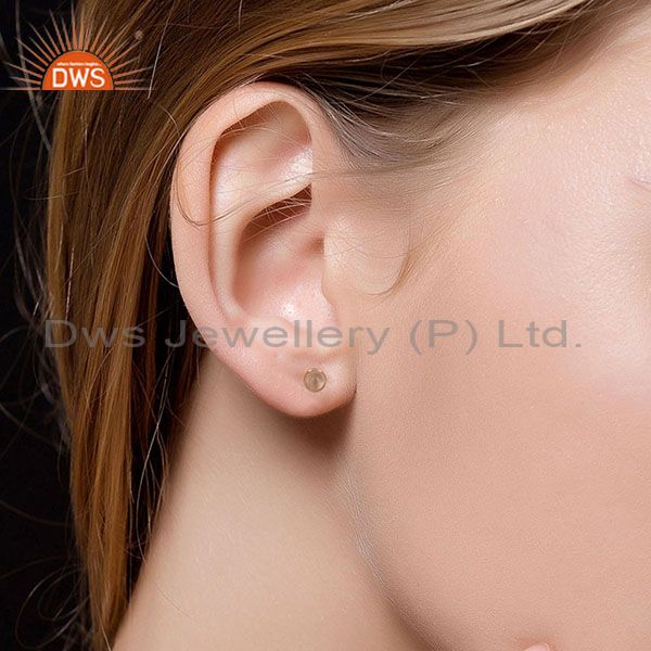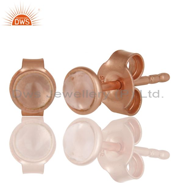 18K Rose Gold Plated 925 Sterling Silver Handmade Rose Quartz Studs Earrings