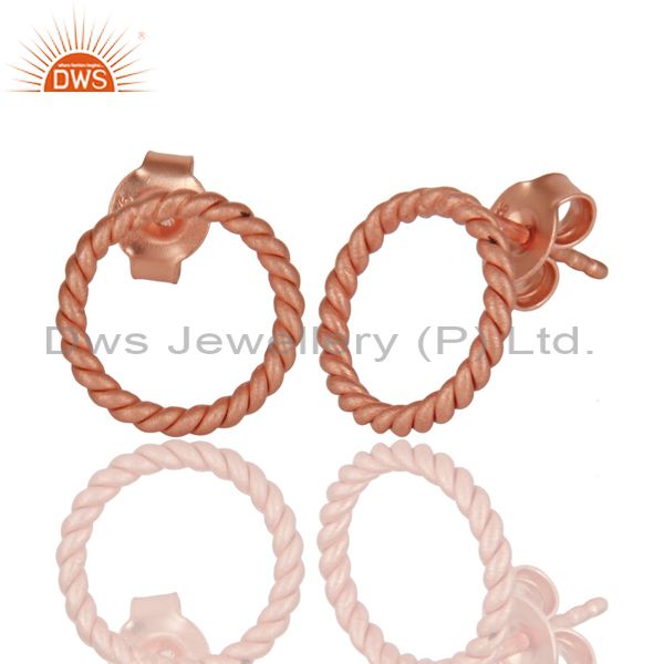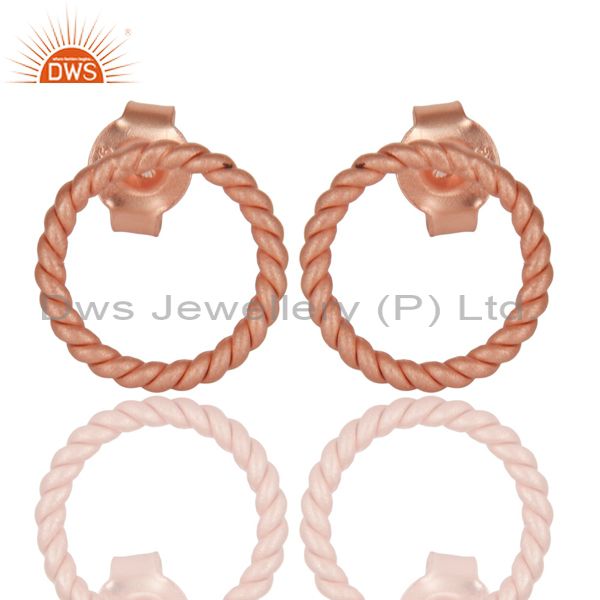 18K Rose Gold Plated 925 Sterling Silver Handmade Twisted Wire Studs Earrings