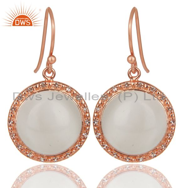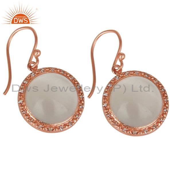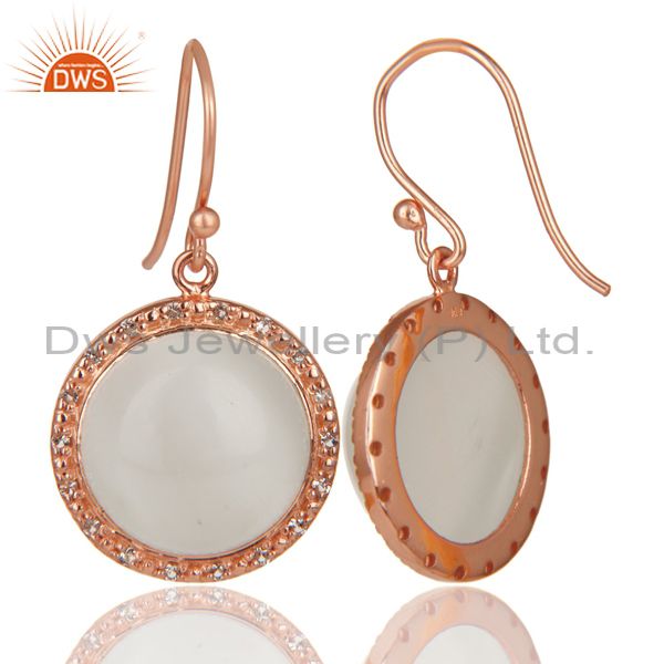 18K Rose Gold Plated 925 Sterling Silver Moonstone & White Topaz Drops Earrings