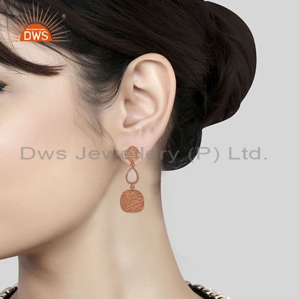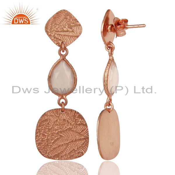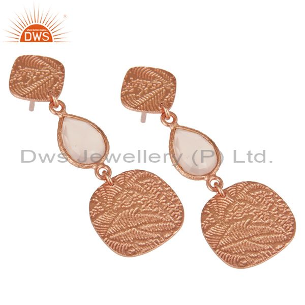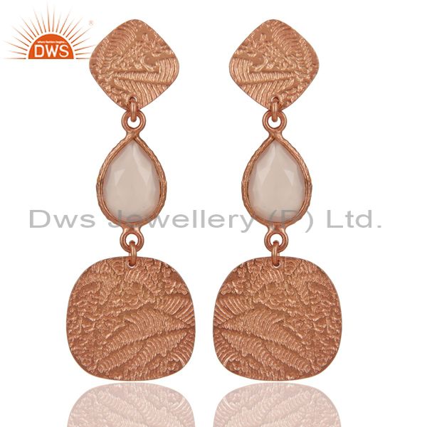 18k Rose Gold Plated 925 Sterling Silver Textured Dyed Chalcedony Dangle Earring