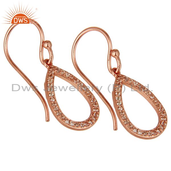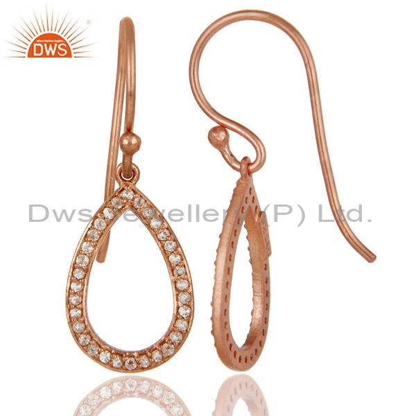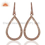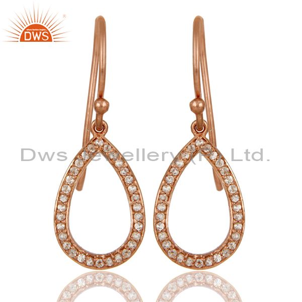 18k Rose Gold Plated Pear Cut 925 Sterling Silver Drop Earrings with White Topaz