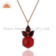 18K Rose Gold Plated Red Aventurine And Garnet Cluster Post Stud Earrings