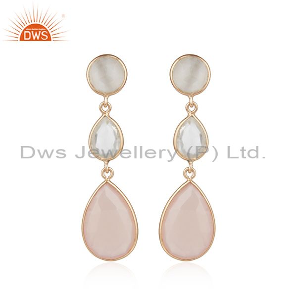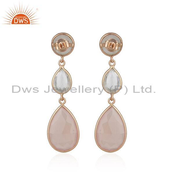 18K Rose Gold Plated Silver Crystal Quartz And Rose Chalcedony Drop Earrings