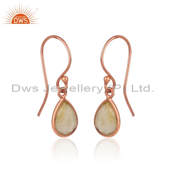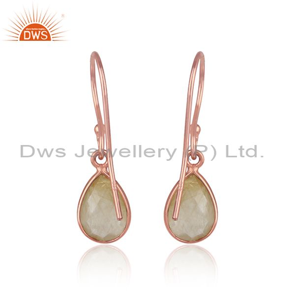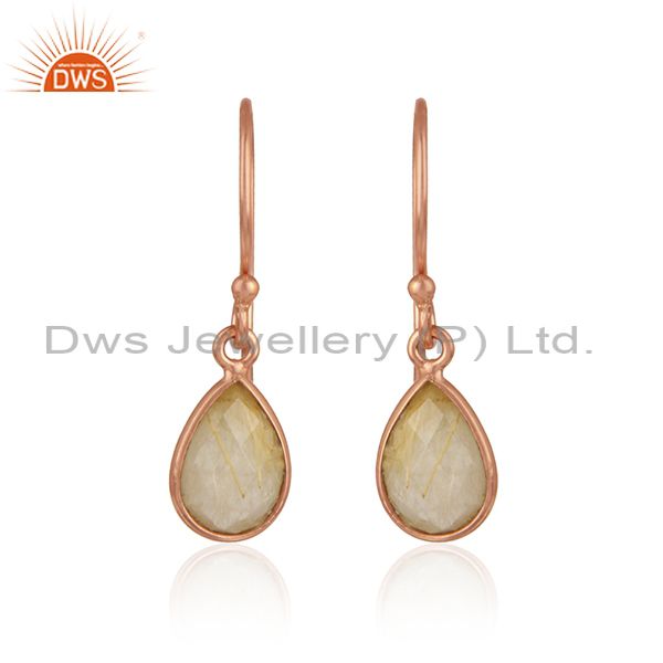 18K Rose Gold Plated Silver Dangle Earring With Golden Rutile