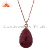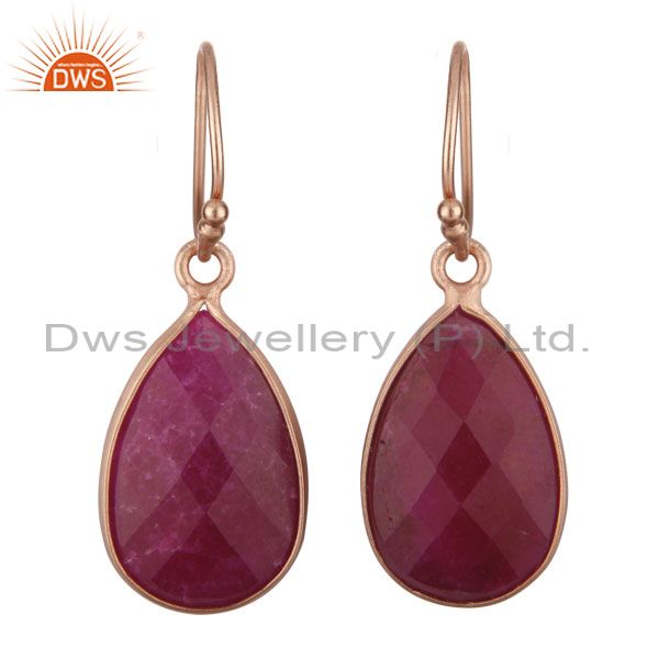 18K Rose Gold Plated Silver Dyed Ruby Gemstone Bezel Set Teardrop Earrings