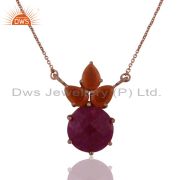 18K Rose Gold Plated Silver Peach Moonstone And Ruby Cluster Post Stud Earrings