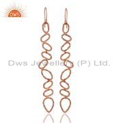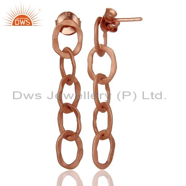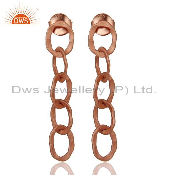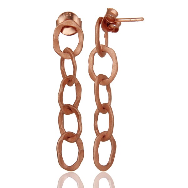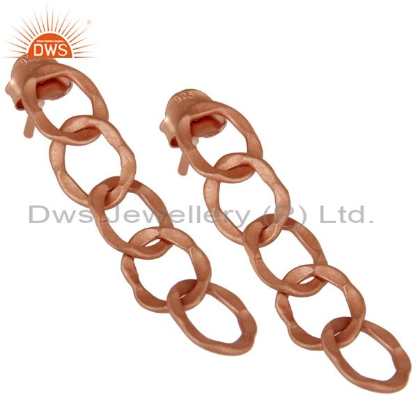 18K Rose Gold Plated Solid Sterling Silver Hammered Link Chain Dangle Earrings