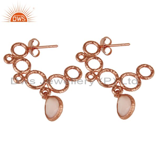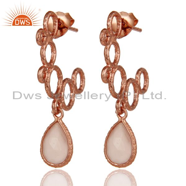 18k Rose Gold Plated Sterling Silver Bezel Set Dyed Chalcedony Dangle Earrings
