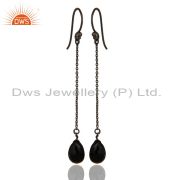18K Rose Gold Plated Sterling Silver Black Onyx Briolette Chain Earrings