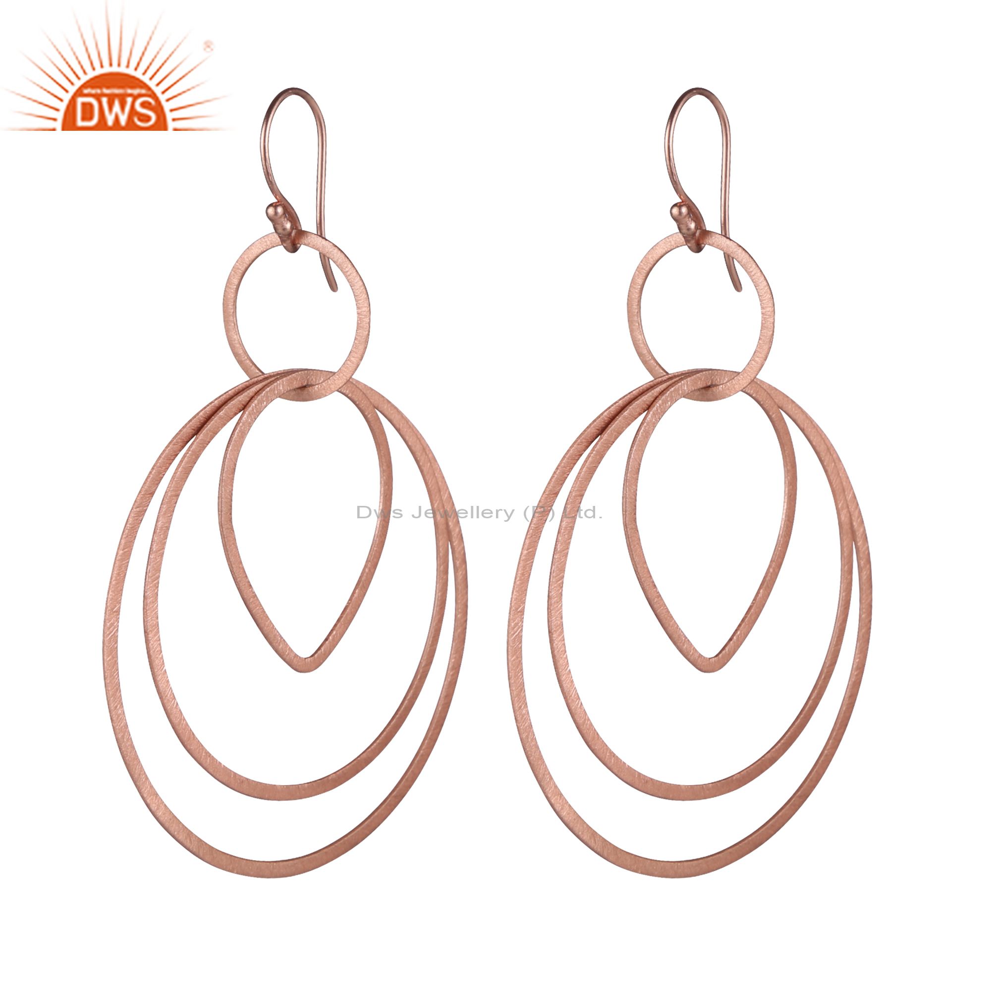 18K Rose Gold Plated Sterling Silver Brushed Finish Multi Circle Dangle Earrings