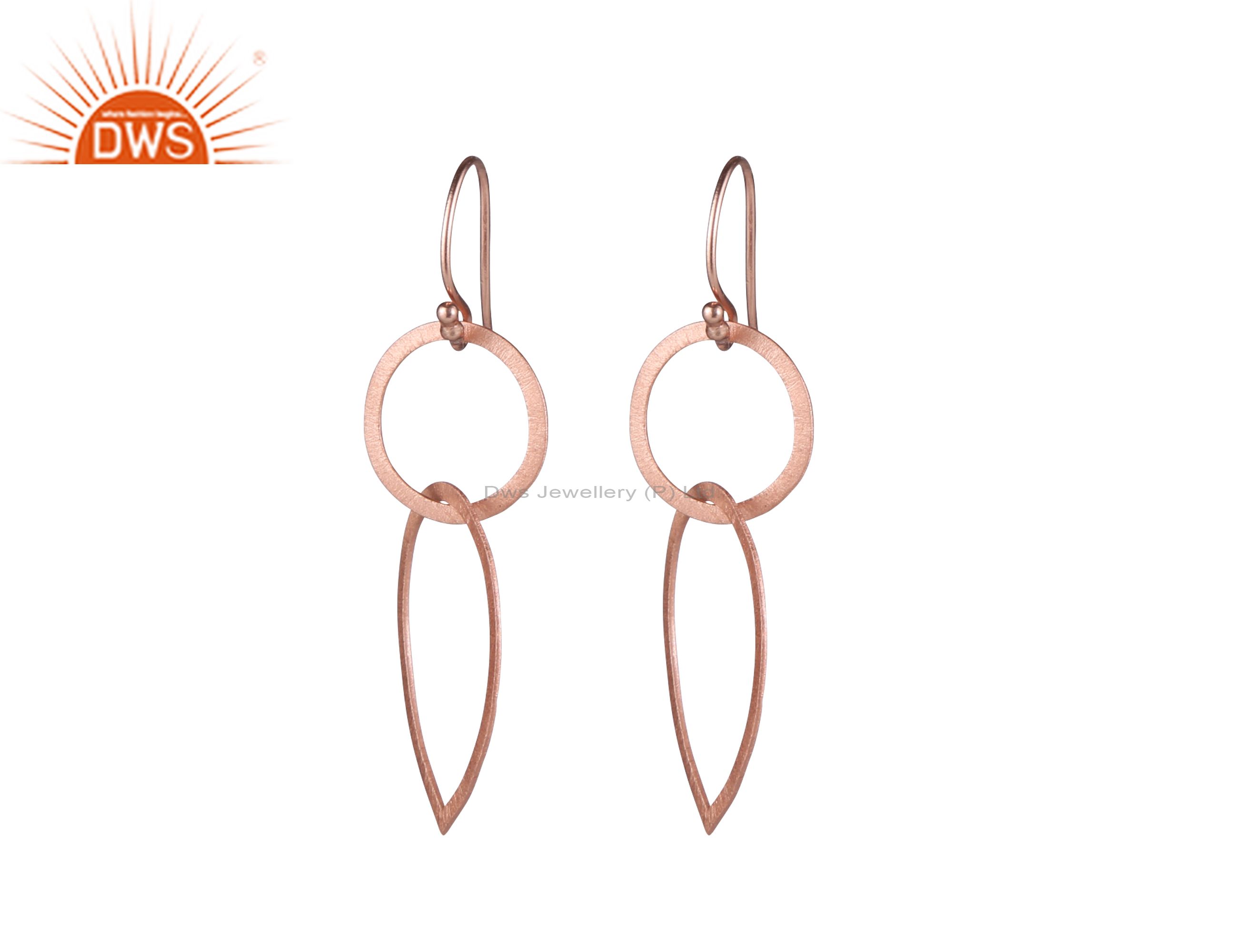18K Rose Gold Plated Sterling Silver Brushed Finish Open Circle Drop Earrings