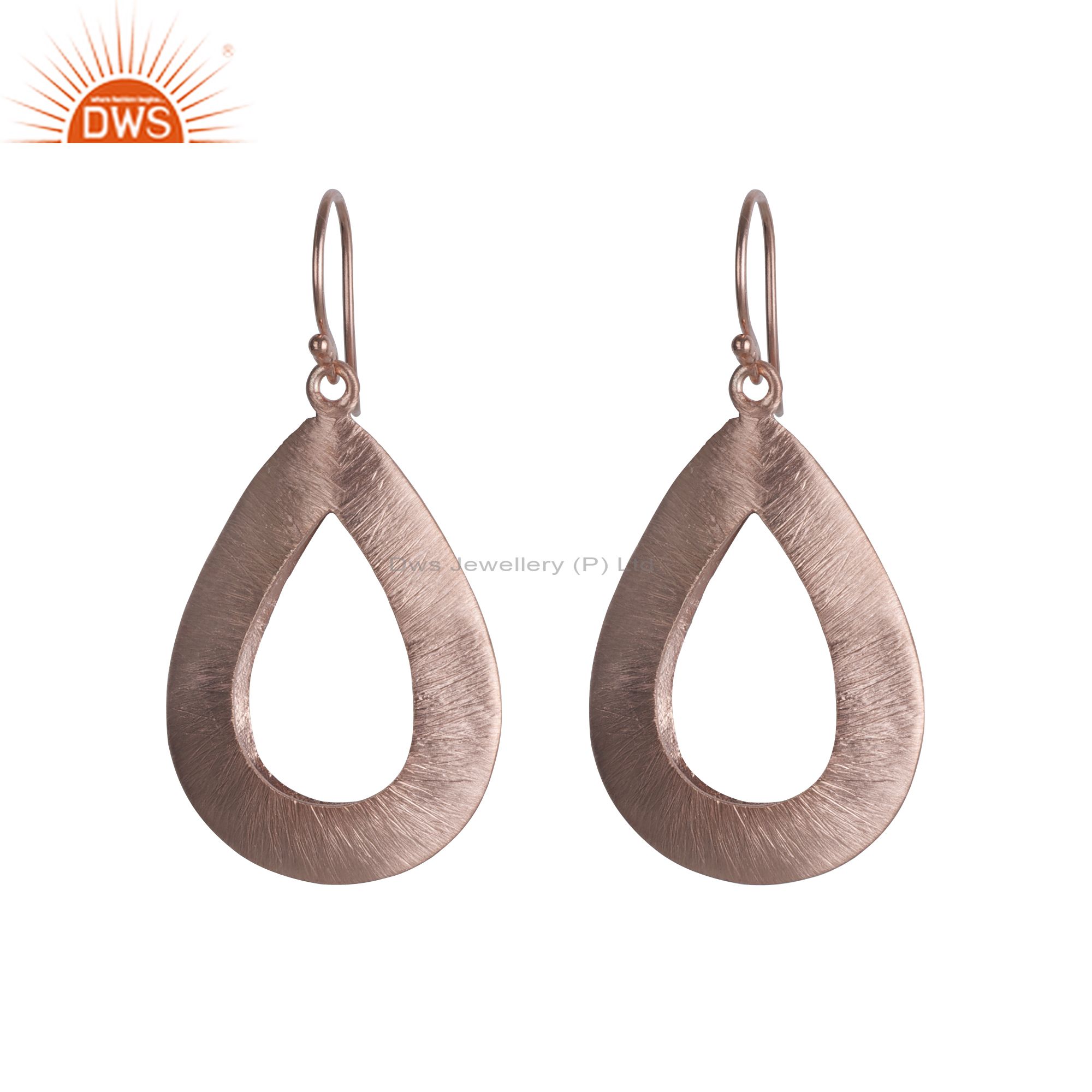 18K Rose Gold Plated Sterling Silver Brushed Finish Open Teardrop Earrings