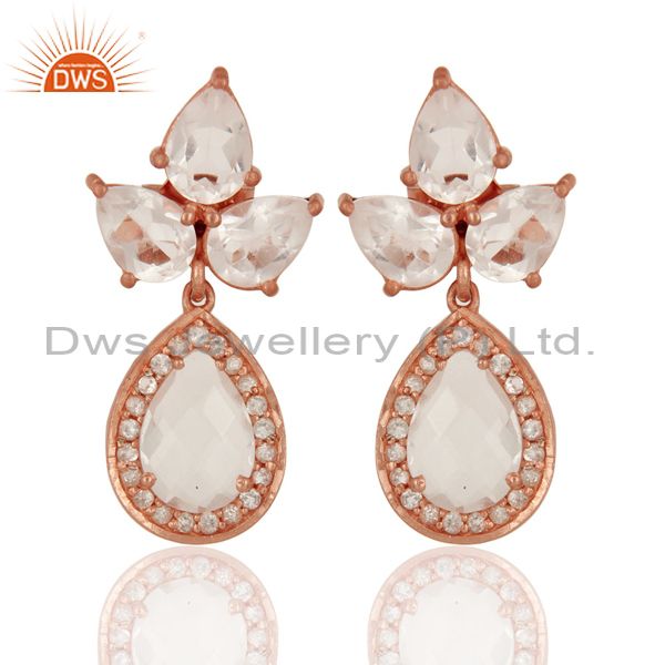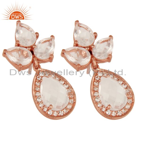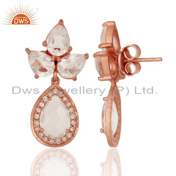 18K Rose Gold Plated Sterling Silver Crystal Quartz And CZ Post Stud Earrings