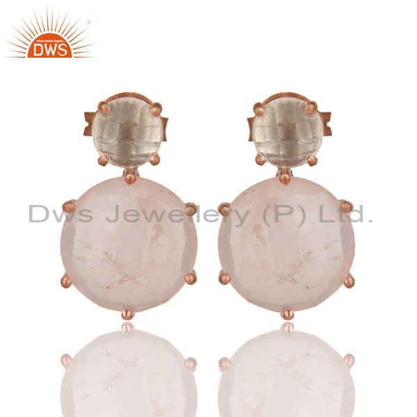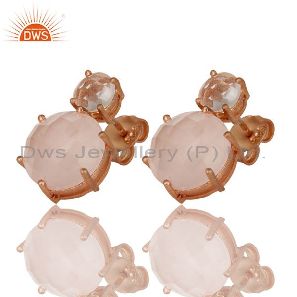 18K Rose Gold Plated Sterling Silver Crystal Quartz And Rose Quartz Stud Earring