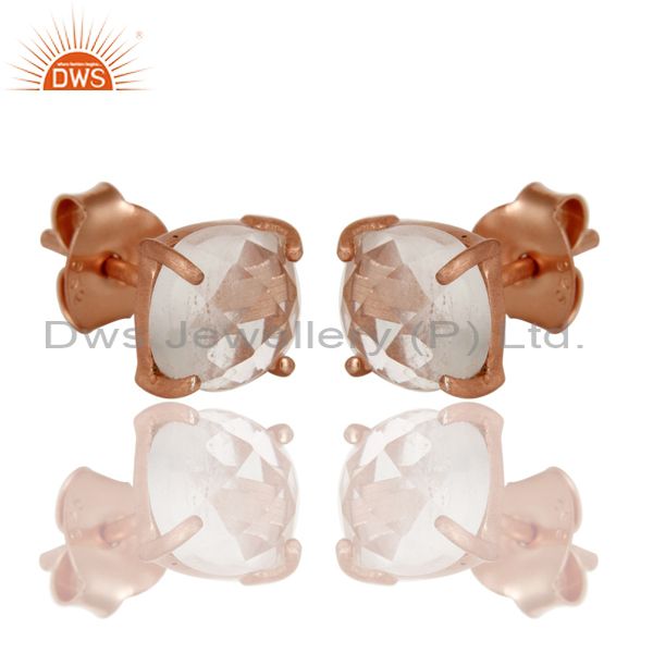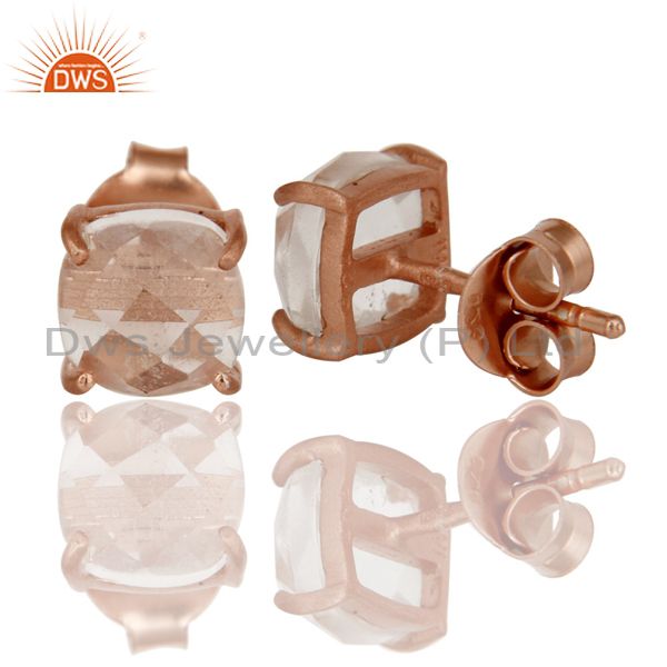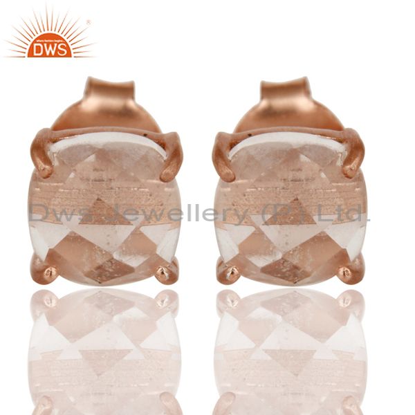 18K Rose Gold Plated Sterling Silver Cushion Cut Crystal Prong Set Stud Earrings