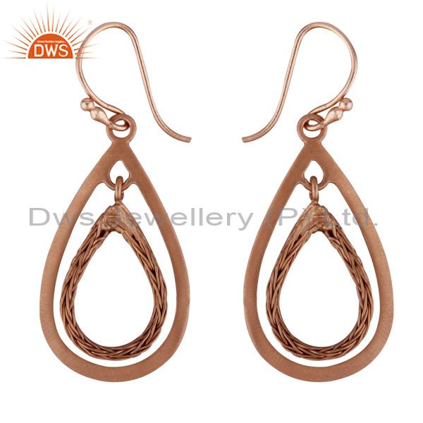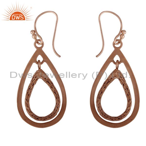 18K Rose Gold Plated Sterling Silver Cutout Teardrop Dangle Earrings