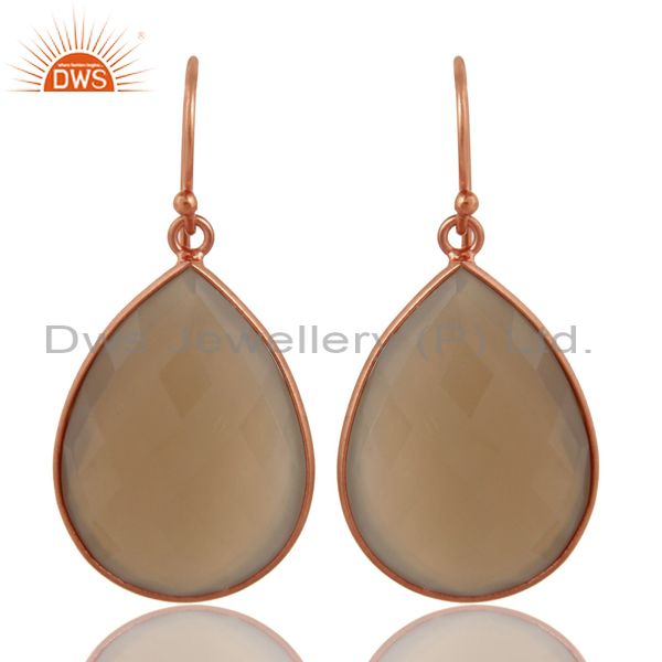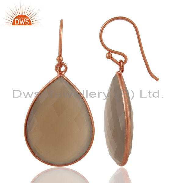 18K Rose Gold Plated Sterling Silver Dyed Grey Chalcedony Bezel Set Drop Earring