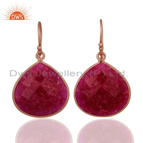 18K Rose Gold Plated Sterling Silver Faceted Ruby Bezel Set Dangle Earrings