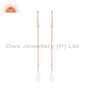 18K Rose Gold Plated Sterling Silver Faceted White Moonstone Bezel Drop Earrings