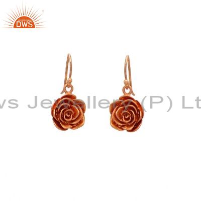 18K Rose Gold Plated Sterling Silver Flower Design Dangle Earrings