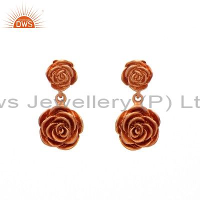18K Rose Gold Plated Sterling Silver Flower Designer Dangle Earrings