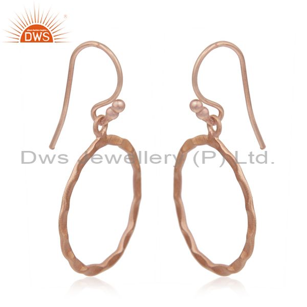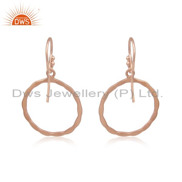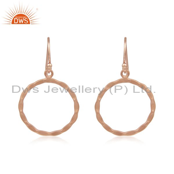 18K Rose Gold Plated Sterling Silver Hammered Circle Dangle Hook Earrings