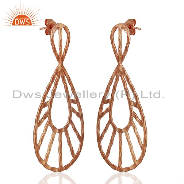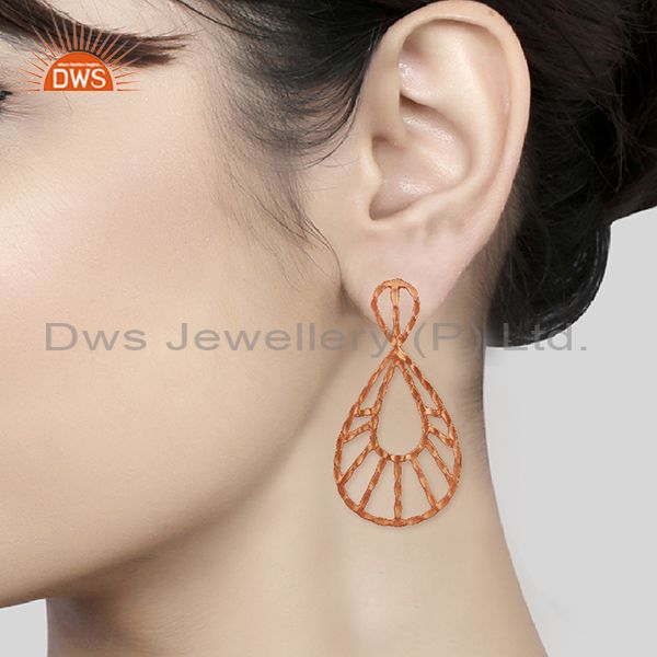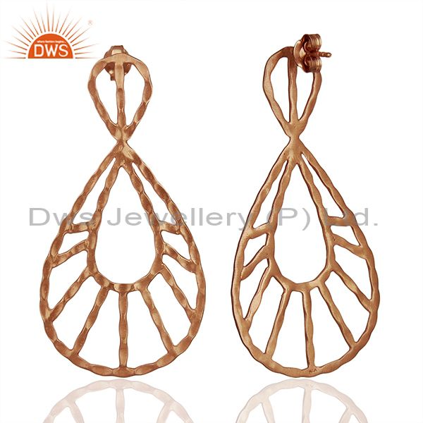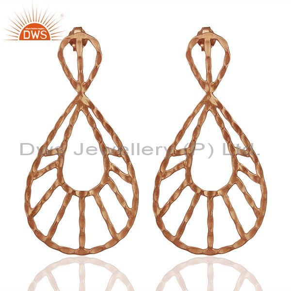 18K Rose Gold Plated Sterling Silver Hammered Designer Drop Dangle Earrings