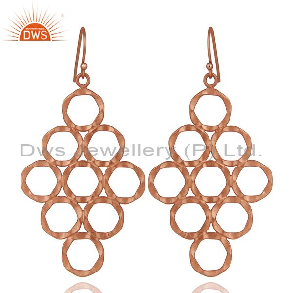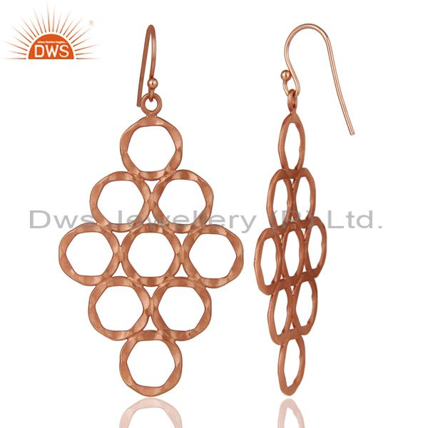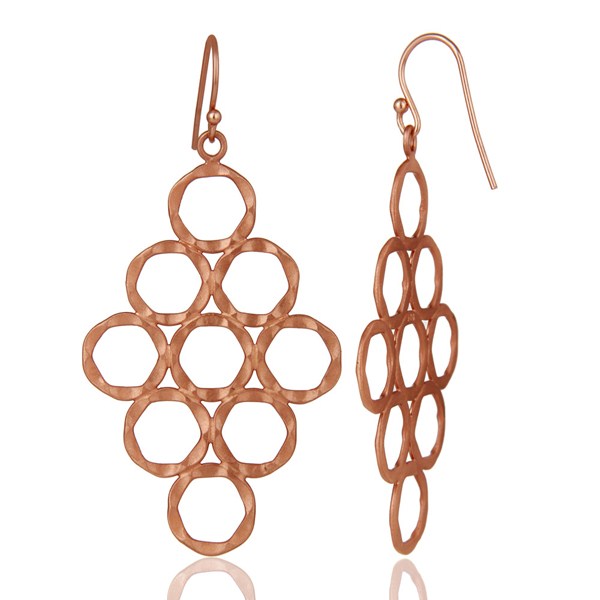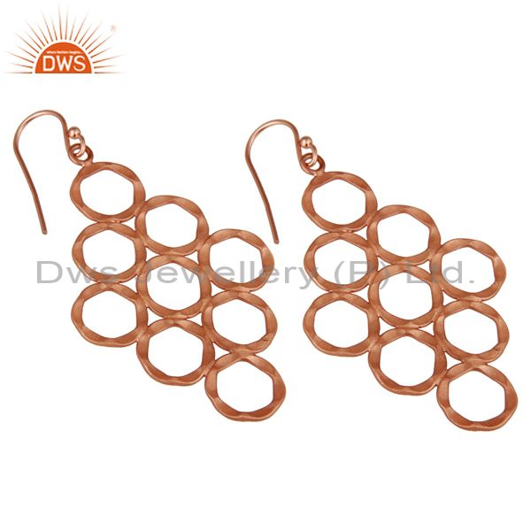 18K Rose Gold Plated Sterling Silver Hammered Multi Open Circle Dangle Earrings
