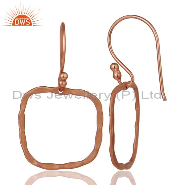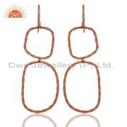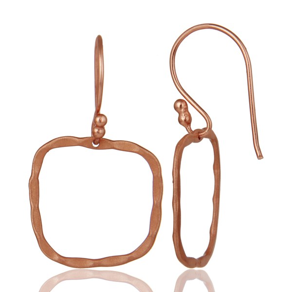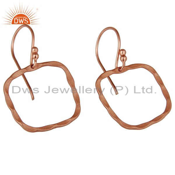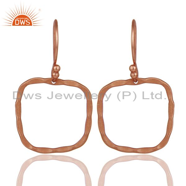 18K Rose Gold Plated Sterling Silver Hammered Open Circle Dangle Earrings