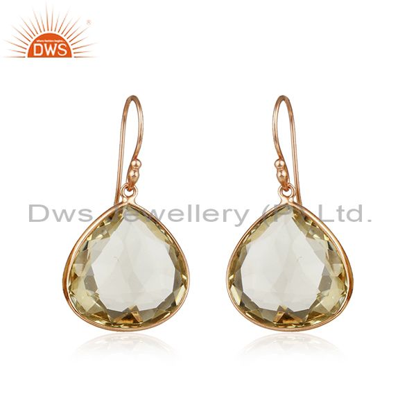18K Rose Gold Plated Sterling Silver Lemon Topaz Bezel Set Drop Earrings