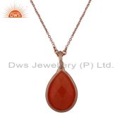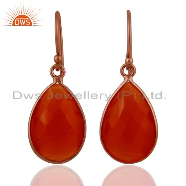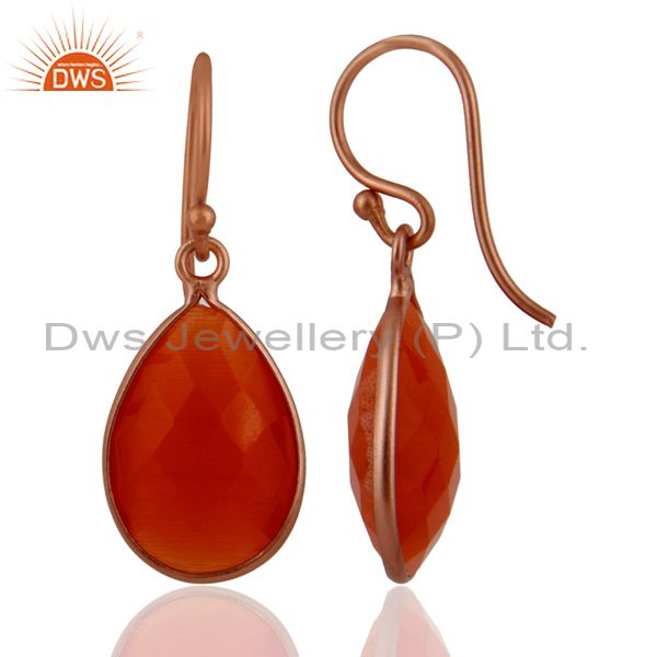 18K Rose Gold Plated Sterling Silver Peach Moonstone Bezel Set Teardrop Earrings