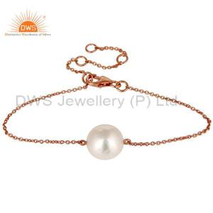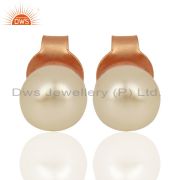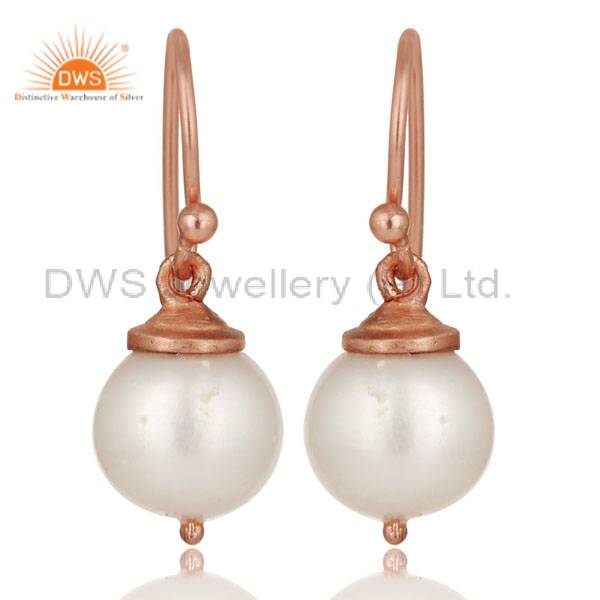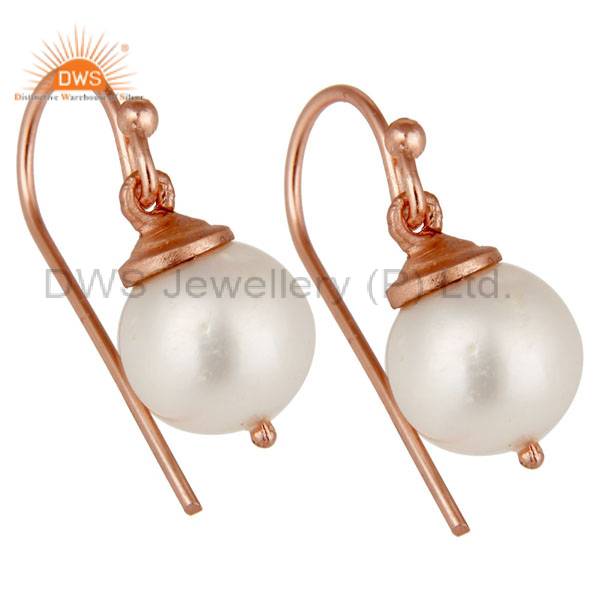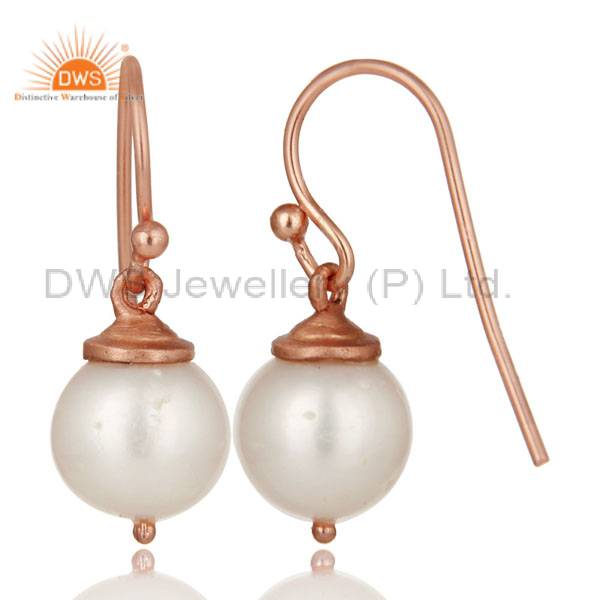 18K Rose Gold Plated Sterling Silver Pearl Dangle Hook Earrings For Womens
