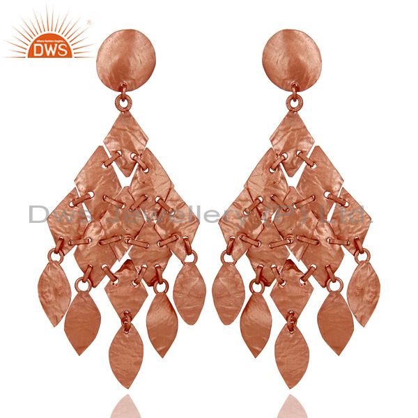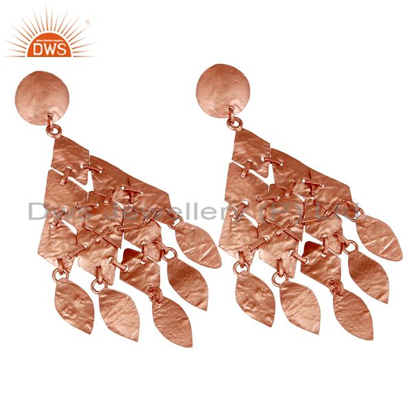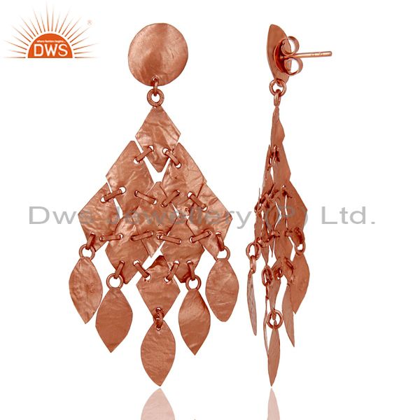 18K Rose Gold Plated Sterling Silver Petals Designer Chandelier Earrings