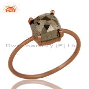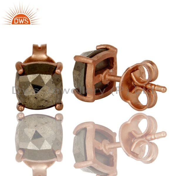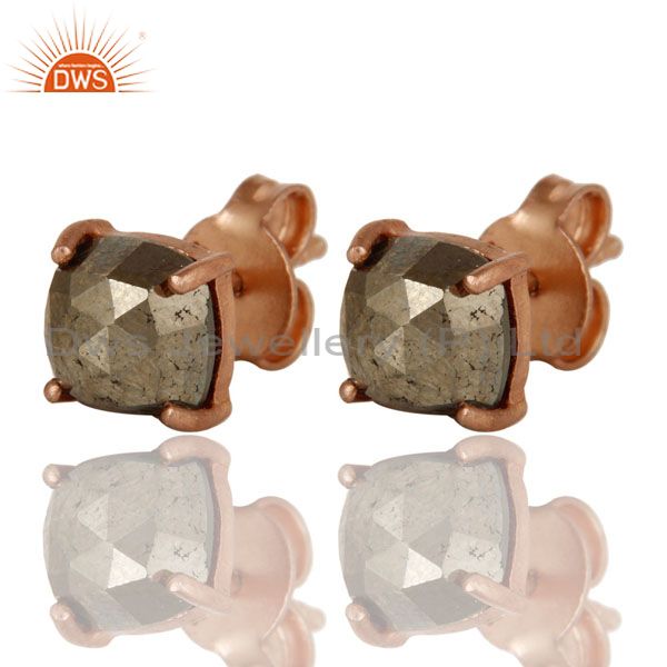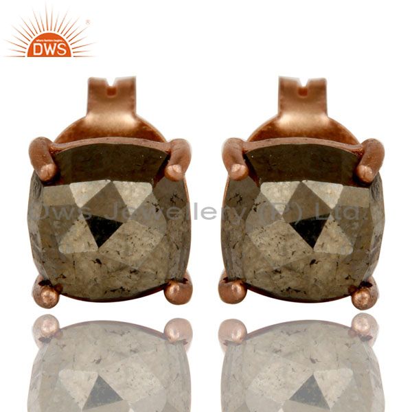 18K Rose Gold Plated Sterling Silver Pyrite Gemstone Prong Set Stud Earrings