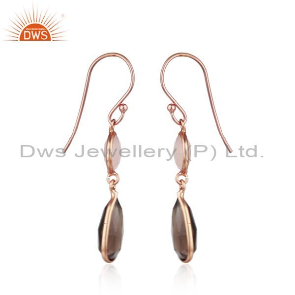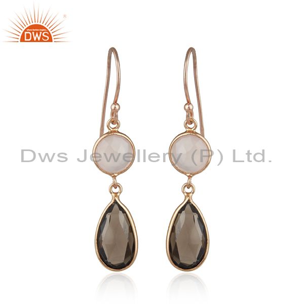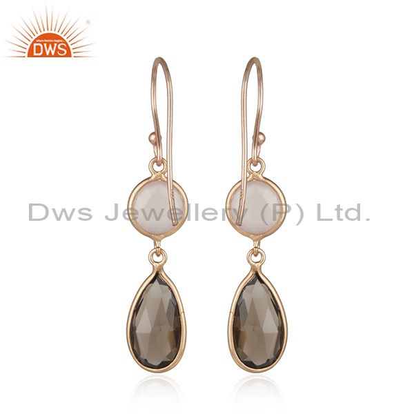 18K Rose Gold Plated Sterling Silver Rose Chalcedony And Smoky Quartz Earrings