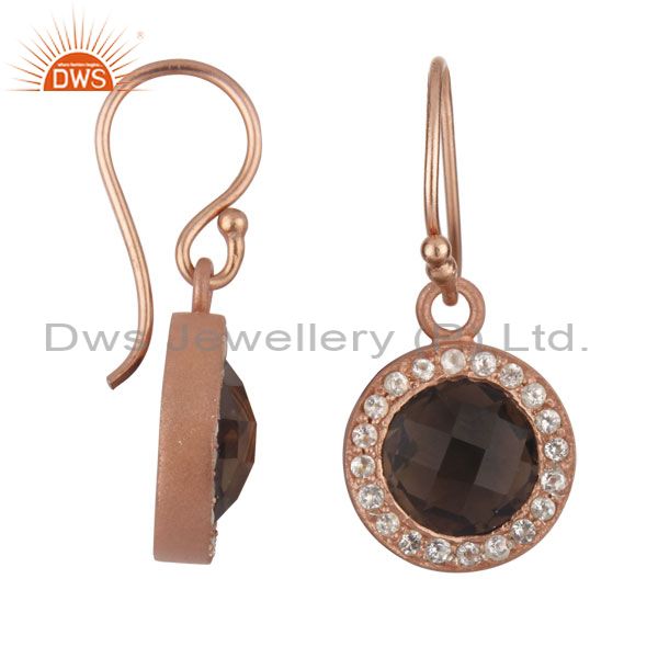 18K Rose Gold Plated Sterling Silver Smoky Quartz And White Topaz Halo Earrings