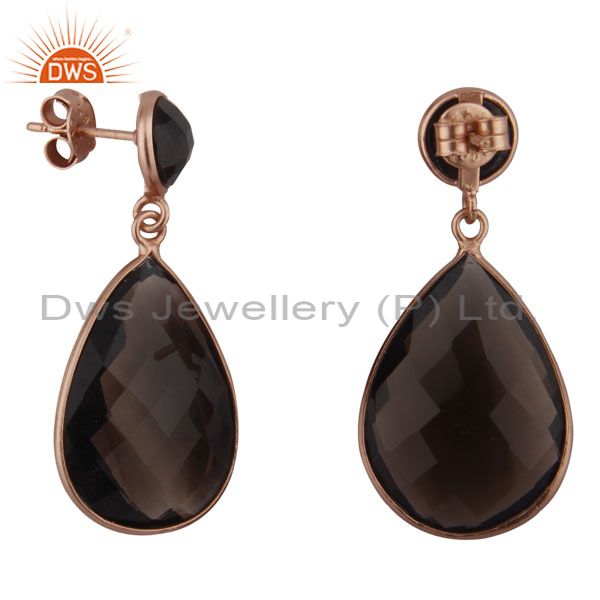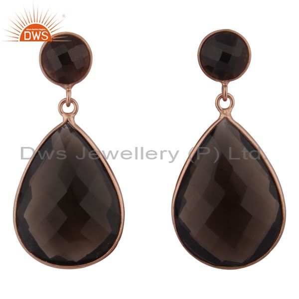 18K Rose Gold Plated Sterling Silver Smoky Quartz Bezel Set Double Drop Earrings