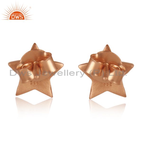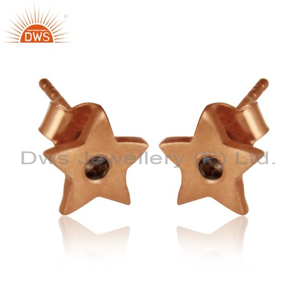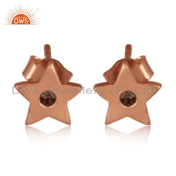 18K Rose Gold Plated Sterling Silver Smoky Quartz Gemstone Star Stud Earrings