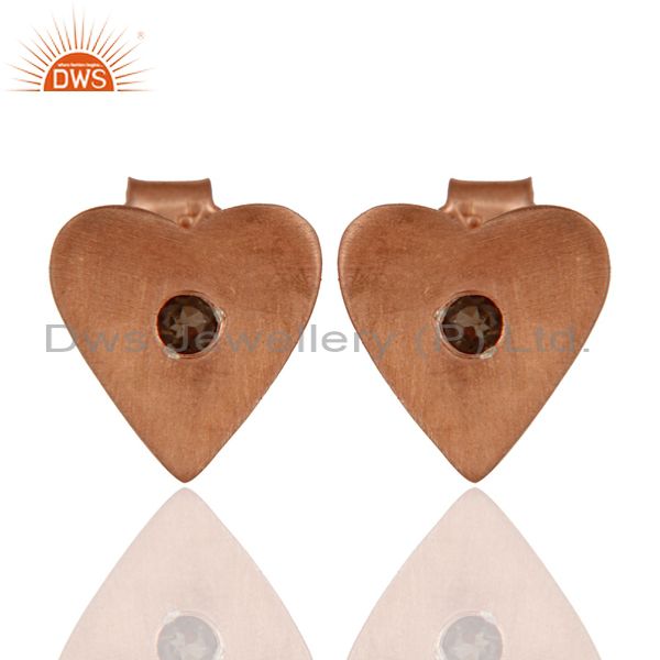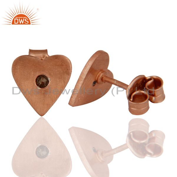 18K Rose Gold Plated Sterling Silver Smoky Quartz Heart Stud Earrings For Womens