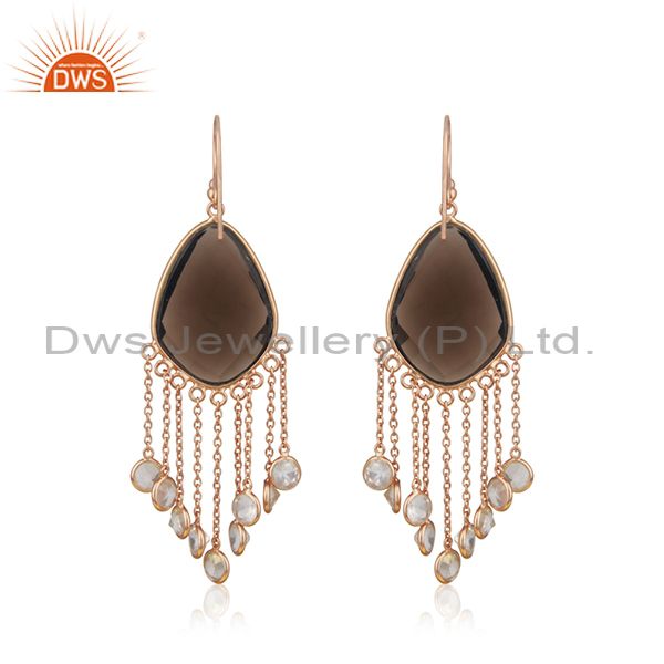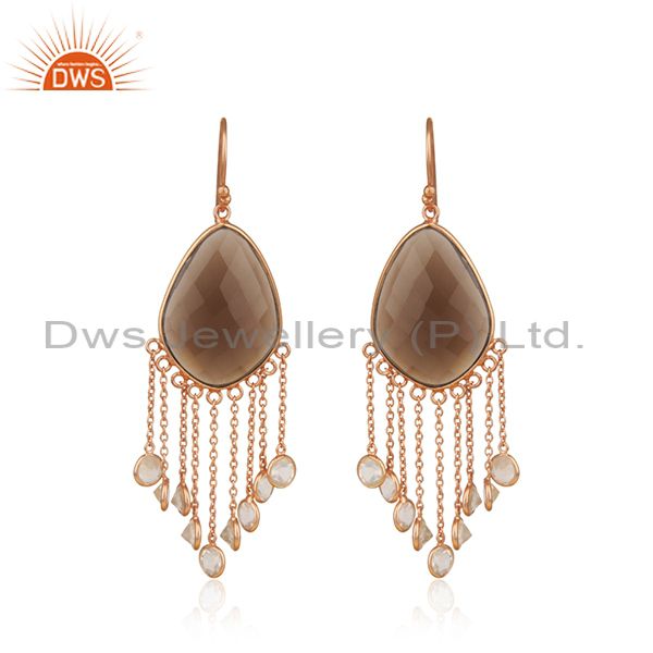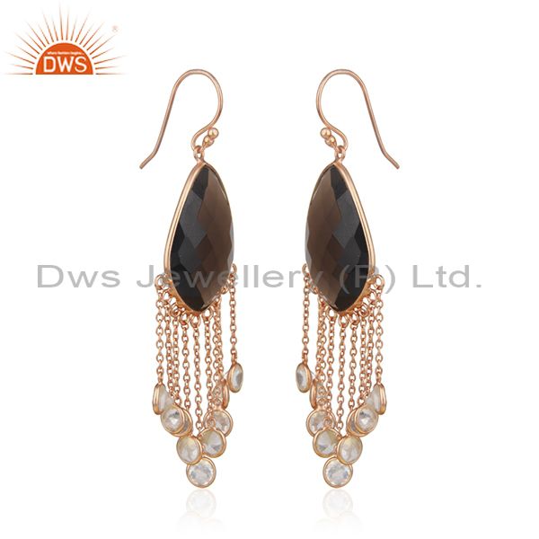 18K Rose Gold Plated Sterling Silver Smoky Quartz Link Chain Chandelier Earrings