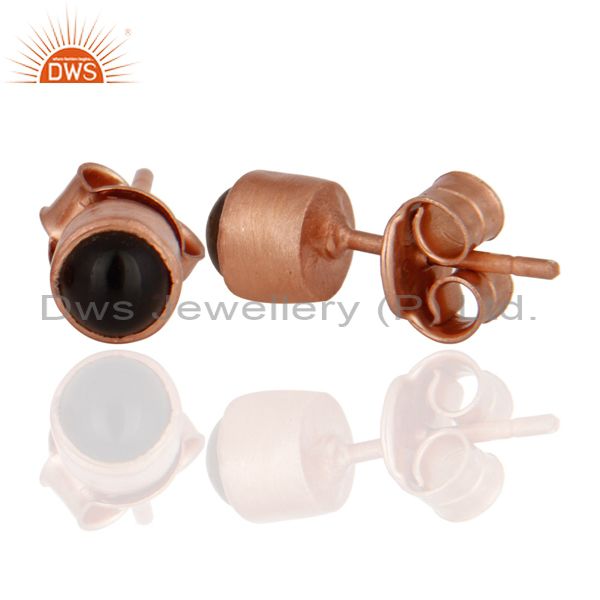 18K Rose Gold Plated Sterling Silver Smoky Quartz Round Gemstone Stud Earrings