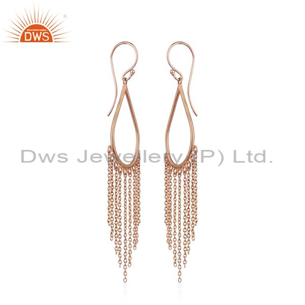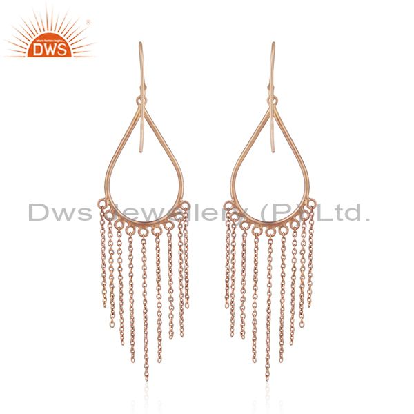18K Rose Gold Plated Sterling Silver Teardrop Design Chain Chandelier Earrings