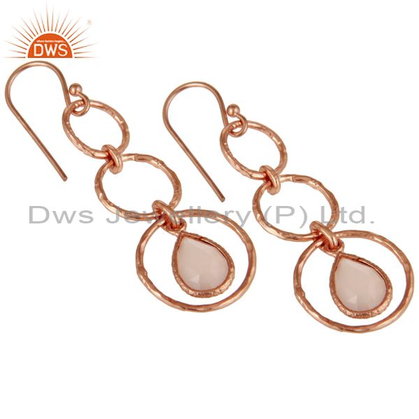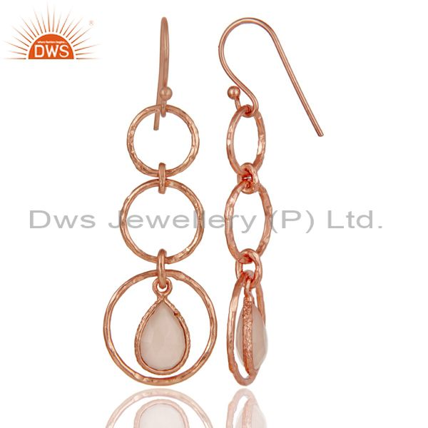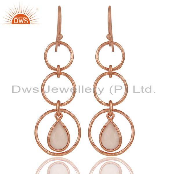 18k Rose Gold Plated Sterling Silver Triple Round Cut Dangle Chalcedony Earrings