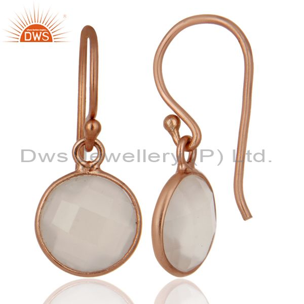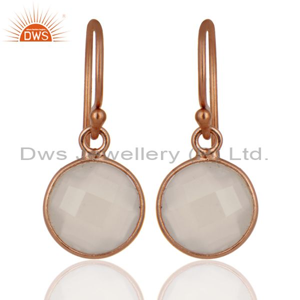 18K Rose Gold Plated Sterling Silver White Chalcedony Bezel Set Drop Earrings