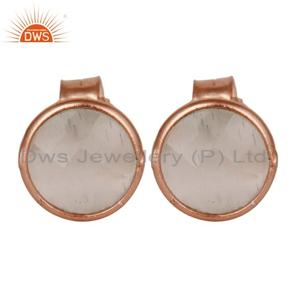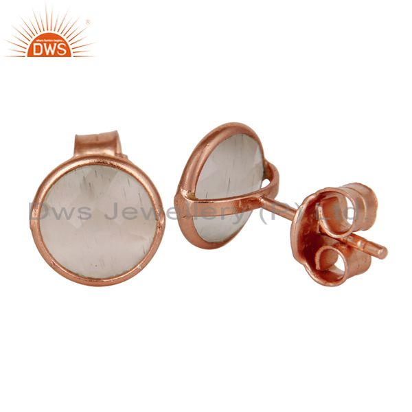 18K Rose Gold Plated Sterling Silver White Moonstone Womens Stud Earrings