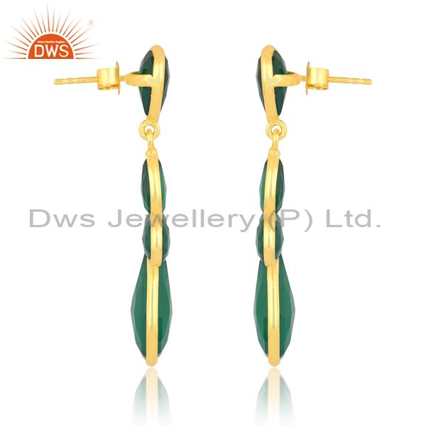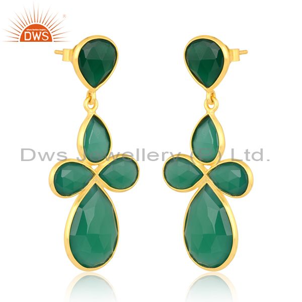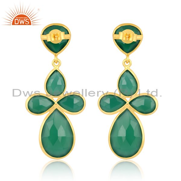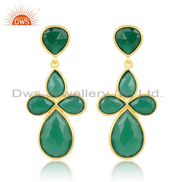 18K Sterling Silver Earring With Heart & Pear Green Onyx
