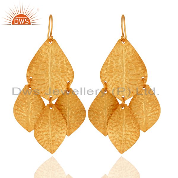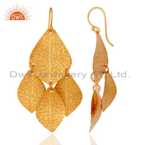 18K Yello Gold Plated Sterling Silver Classics Petals Womens Chandelier Earrings