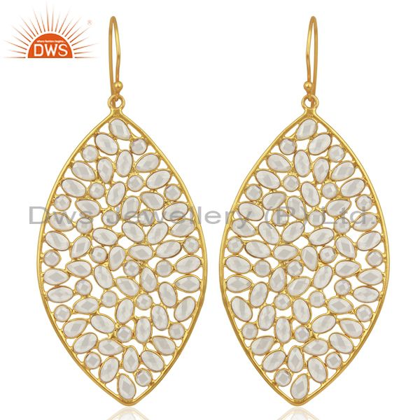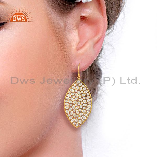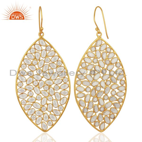 18K Yellow Gold High Polished Sterling Silver Cubic Zirconia Designer Earrings