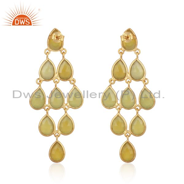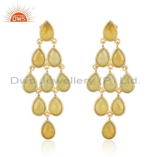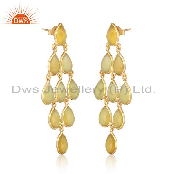 18K Yellow Gold On Silver Yellow Chalcedony Chandelier Earring